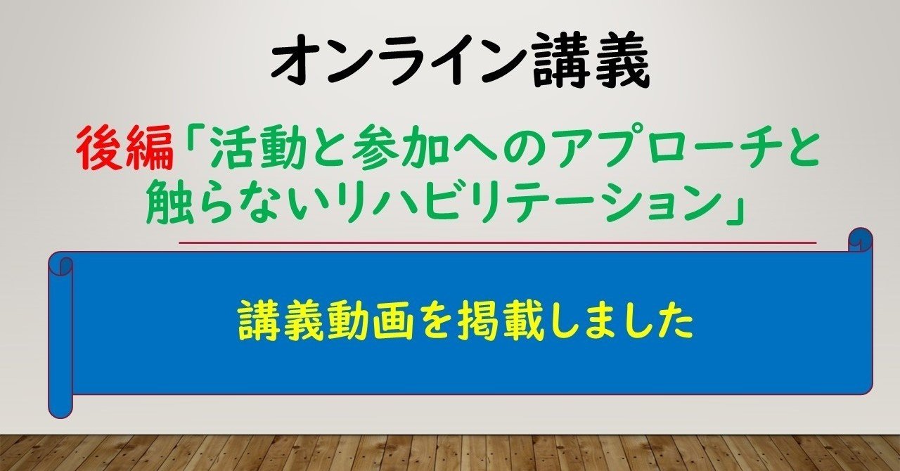 ⇒6月23日オンライン講義「活動と参加へのアプローチと触らないリハビリテーション」前編