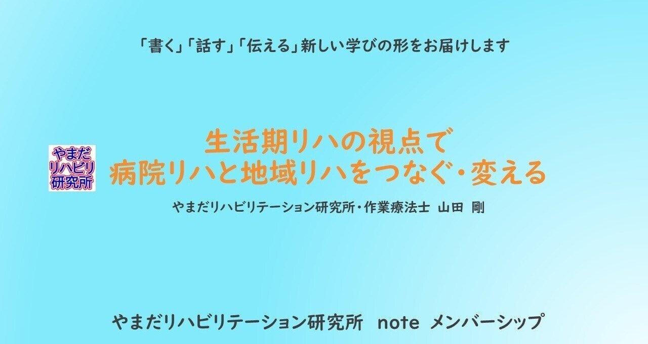 やまだリハビリテーション研究所|noteやまだリハビリテーション研究所が運営するnoteサイト。フリーランス作業療法士 やまだ が書いています。作業療法士として書いているブログ から、ちょっとスピンアウトしてこちらにも少しずつ書いていきたい...